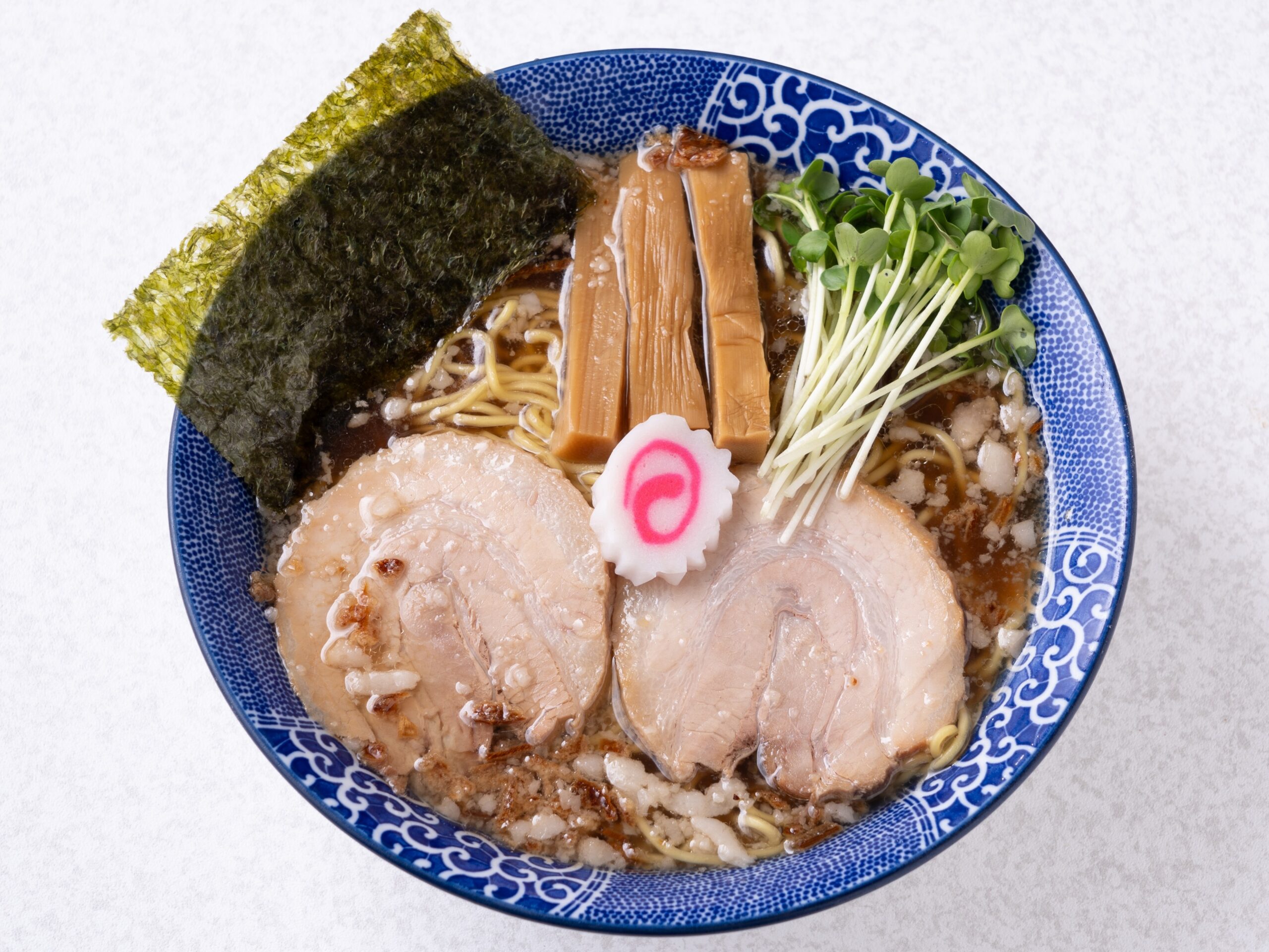 動物系素材の旨味をさらに加え、干し椎茸や白菜・キャベツほか生の野菜をふんだんに使い、スッキリ且つ厚みのある旨味を感じられる華やかな醤油の香りのスープに仕上げました。