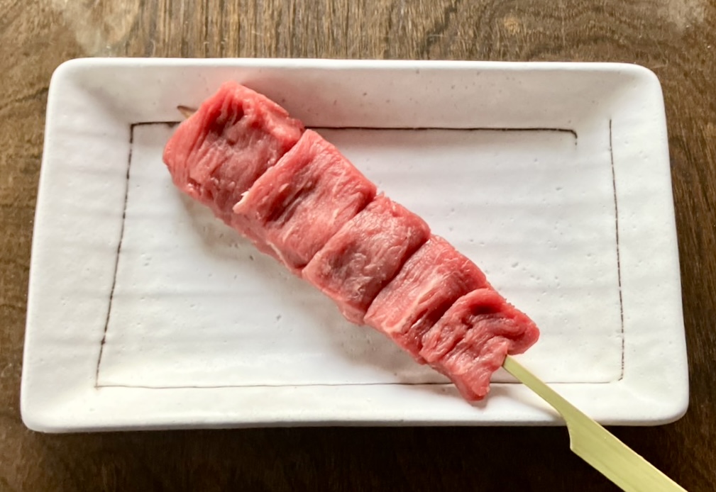 『牛ヒレ串』は、脂肪分が少なく、とっても柔らかい赤身が特徴です。上品な味わいをお楽しみいただけます。